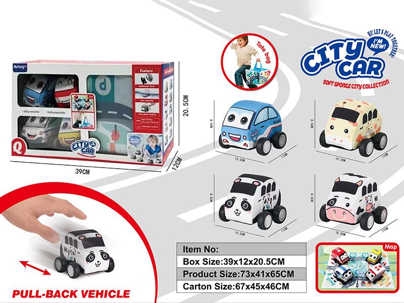 4 Pull Back Cloth Cars + Map(Storable)