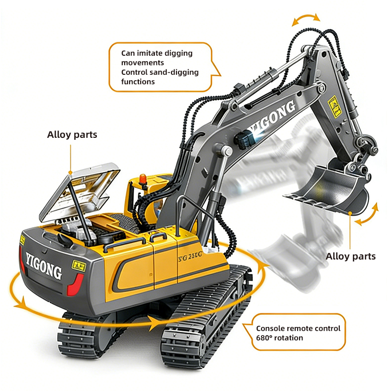 11CH Alloy Remote Control Hook Machine Driving on SandThe Alloy Remote Control Hook Machine can traverse sandy terrain, mountainous areas, and grasslands.11CH Alloy Remote Control Hook Machine Durable and Shock-Resistant A little boy sat on the floor playing with the Alloy Remote Control Hook MachineIntroduction to the Functions and Features of the 11CH Alloy Remote Control Hook Machine Alloy Remote Control Hook Machine Remote Control Function OverviewDimensions of the 11CH Alloy Remote Control Hook Machine and its Outer Packaging