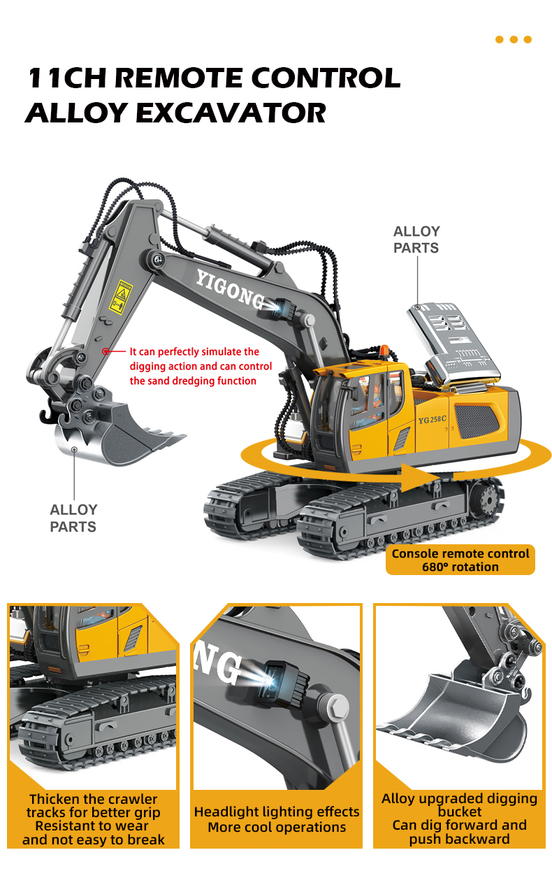 2.4G 11CH Remote Control Alloy Excavator