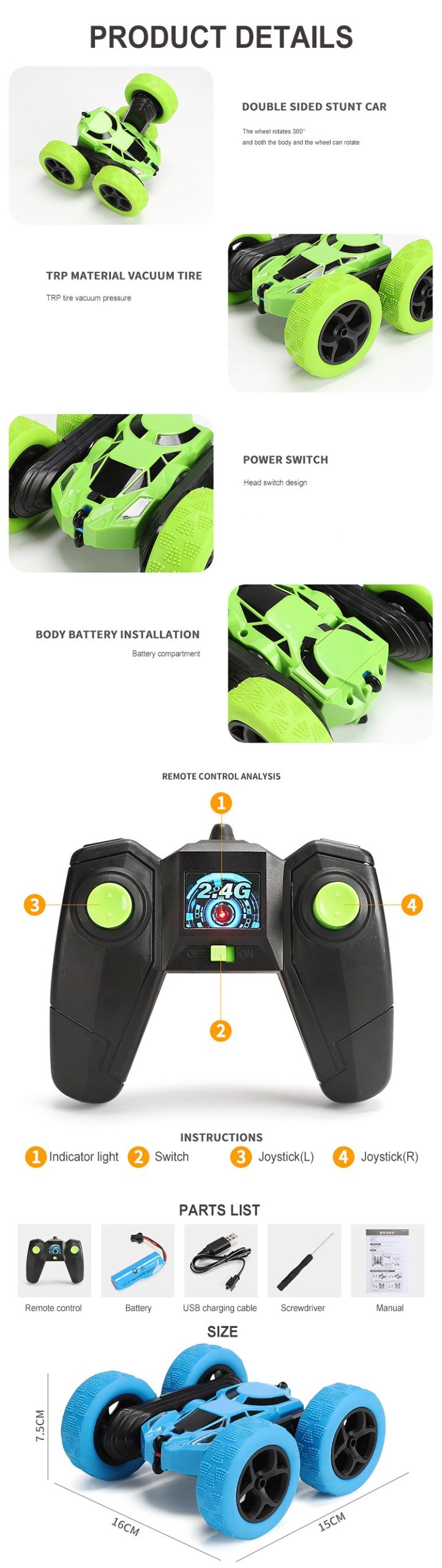 2.4G Remote Control Double-Sided Stunt Car