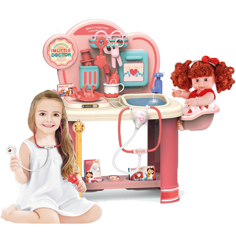 20PCS 24 Inch Medical Appliance Nursing Table With Water Outlet+11 Inch Full Vinyl Doll+Medical Appliance Accessories
