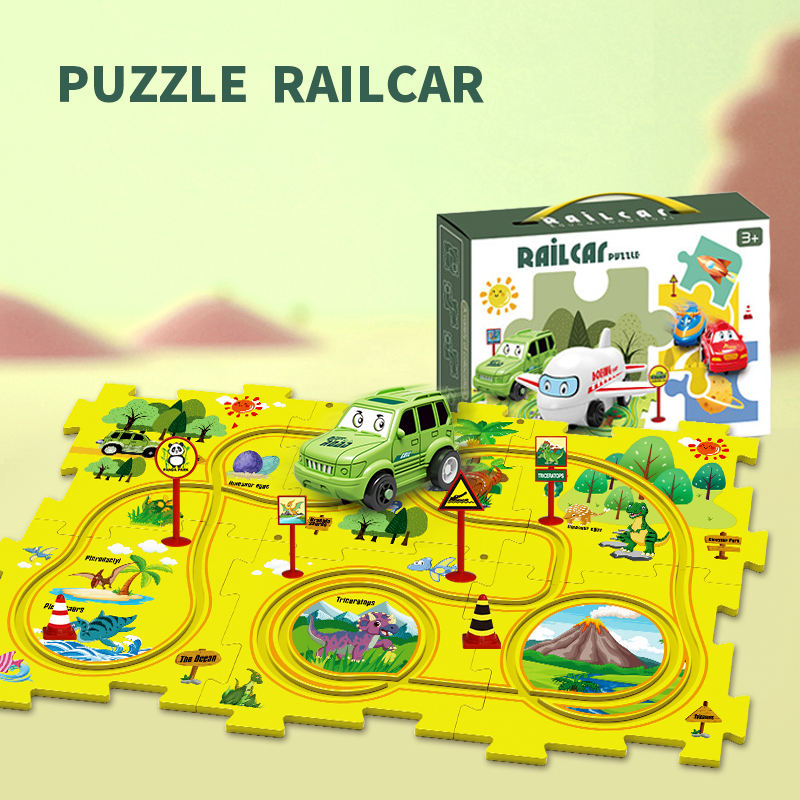 25Pcs Dinosaur Paradise Puzzle Rail Car