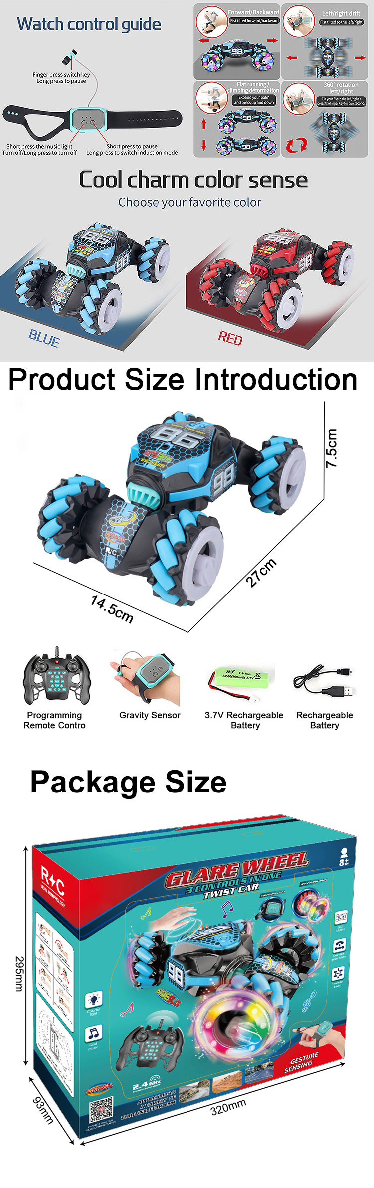 3 Controls In One Glare Wheel Twist Car (2.4G Dual Remote Control)