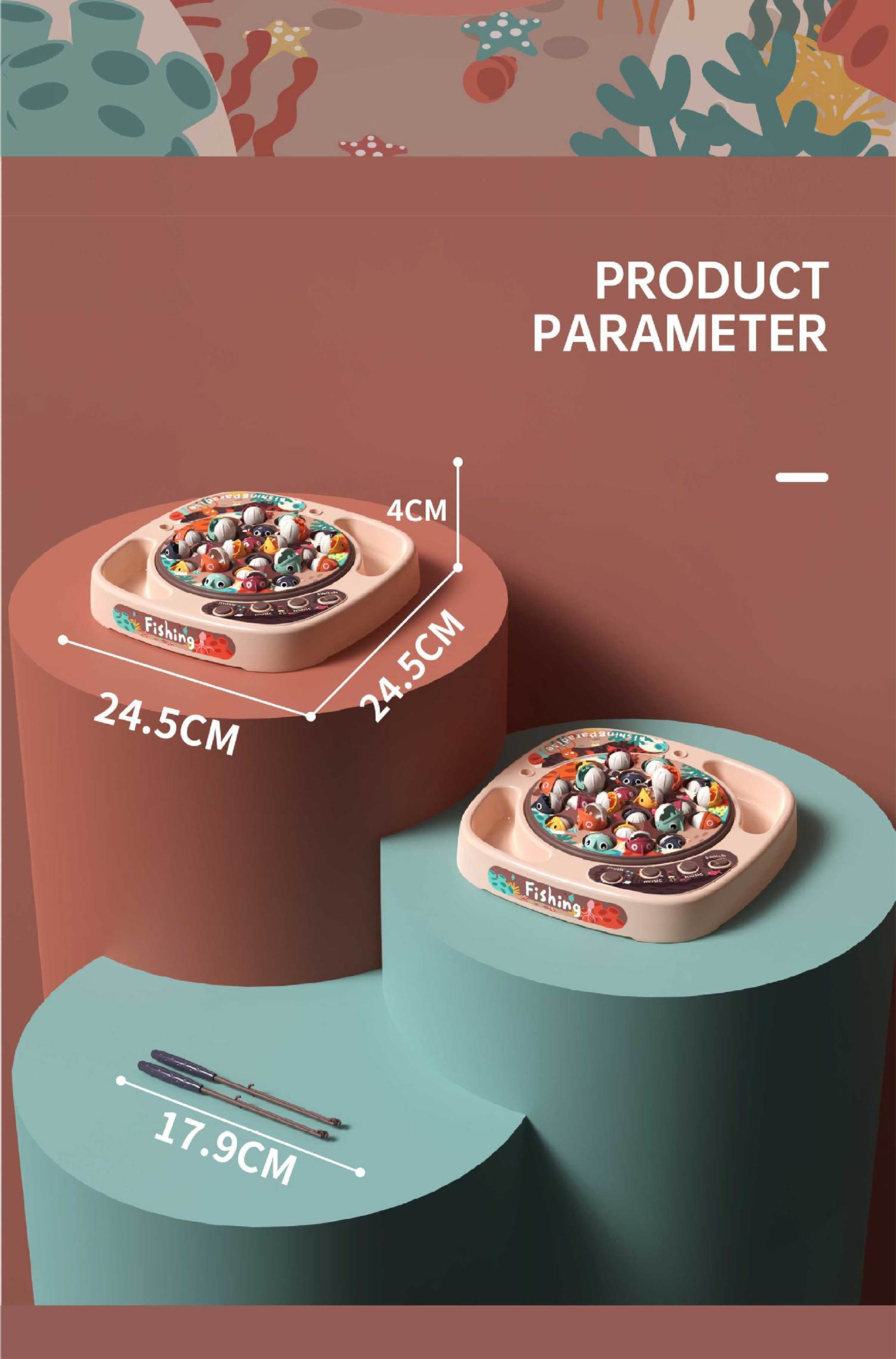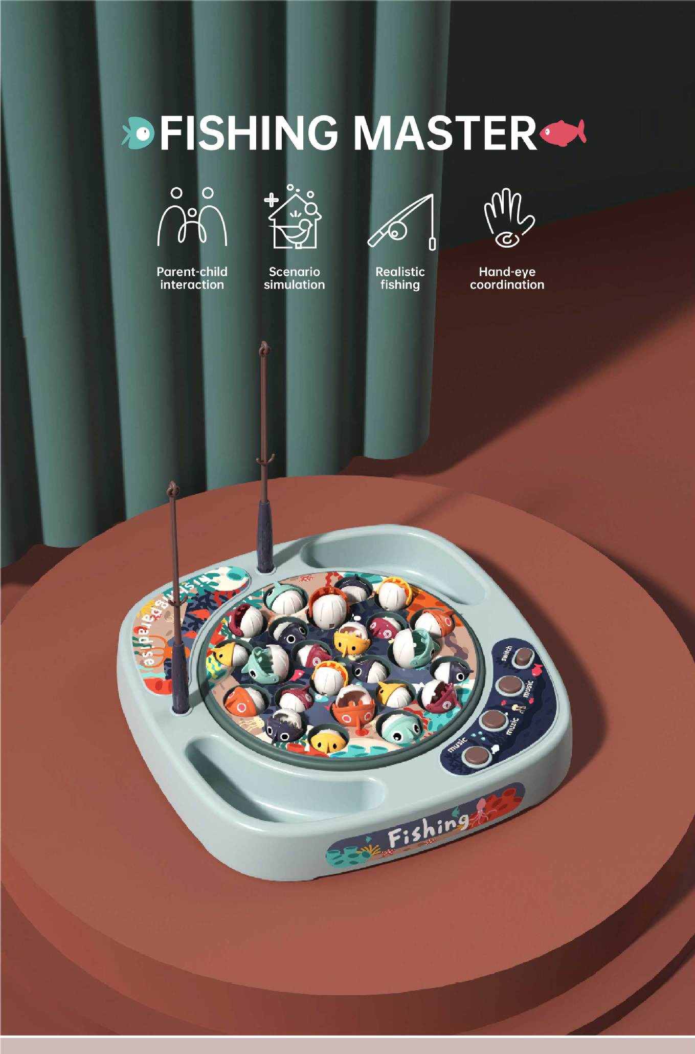 45pcs Big Fish And Small Fish Cyclic Rotating Fishing Game Set