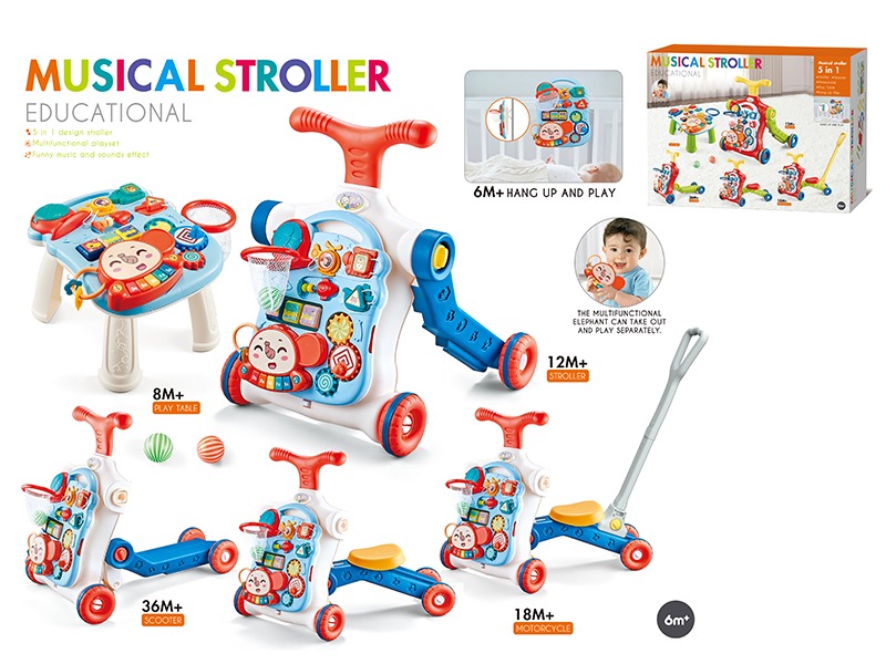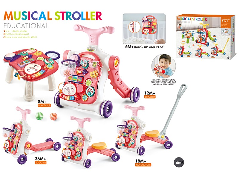 5 In 1 Baby Walker(With Water Bottle ,Push Handle) RED COLOR