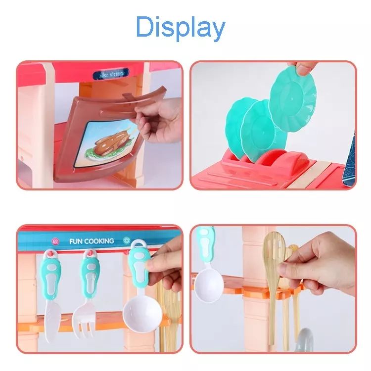 65CM Spray Kitchen(With Spray,Novelty Frying Pan, Color Changing Food,Light,Effuent Function)33PCS