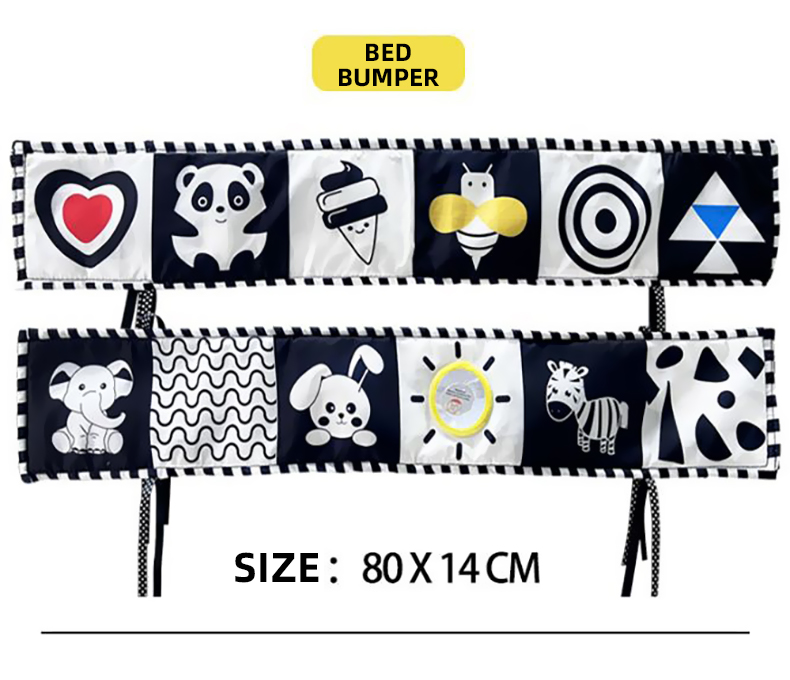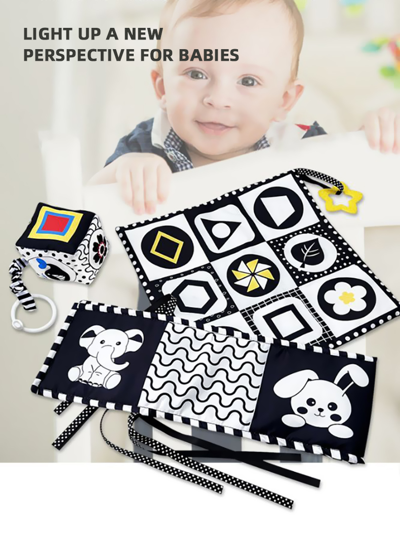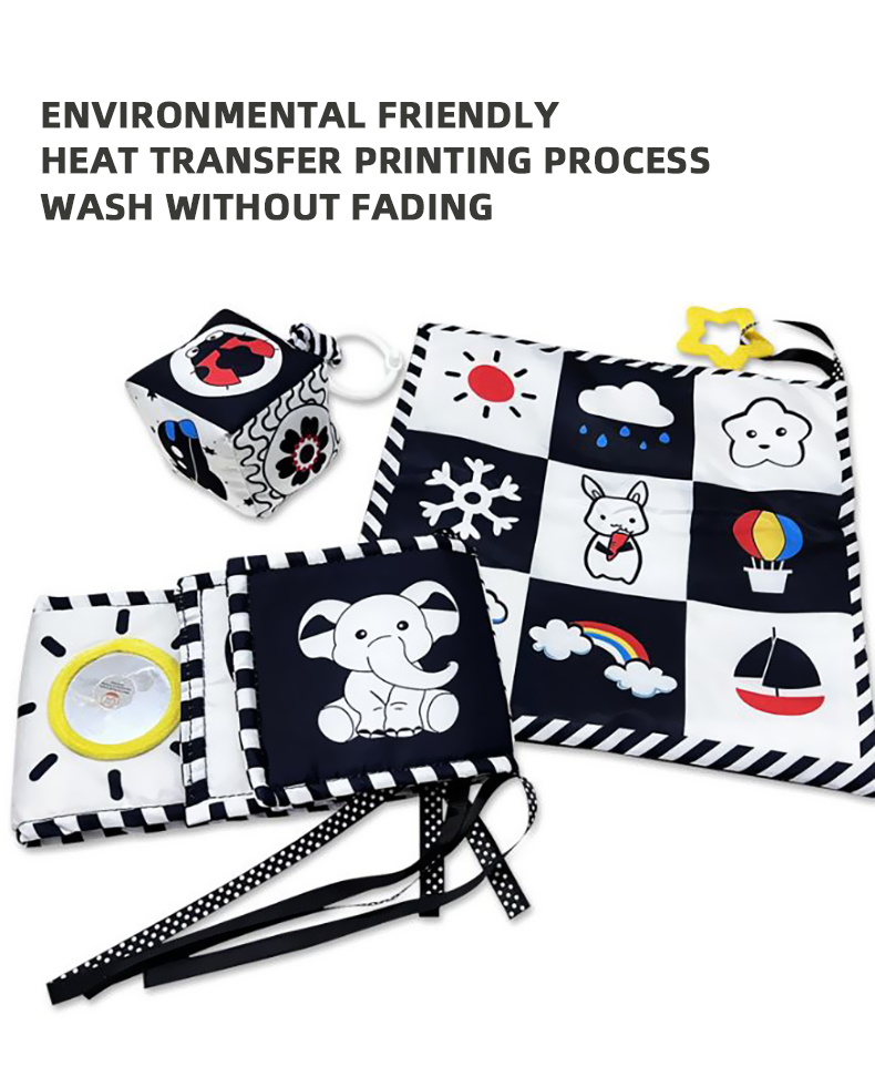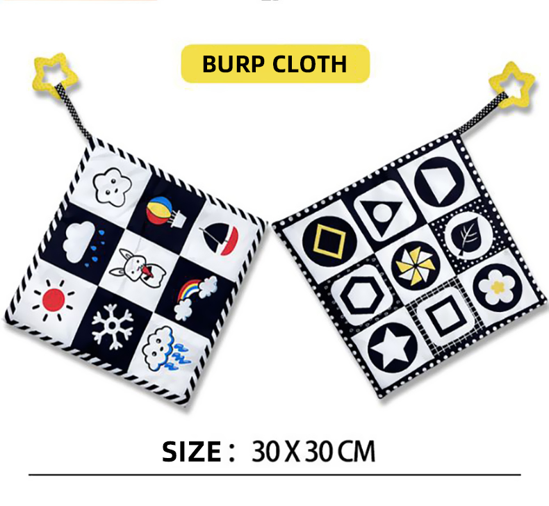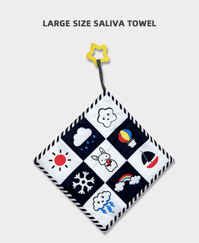 Black & White Bed Surround Cloth Book Saliva Towel Hanging Rattle Set 3pcs