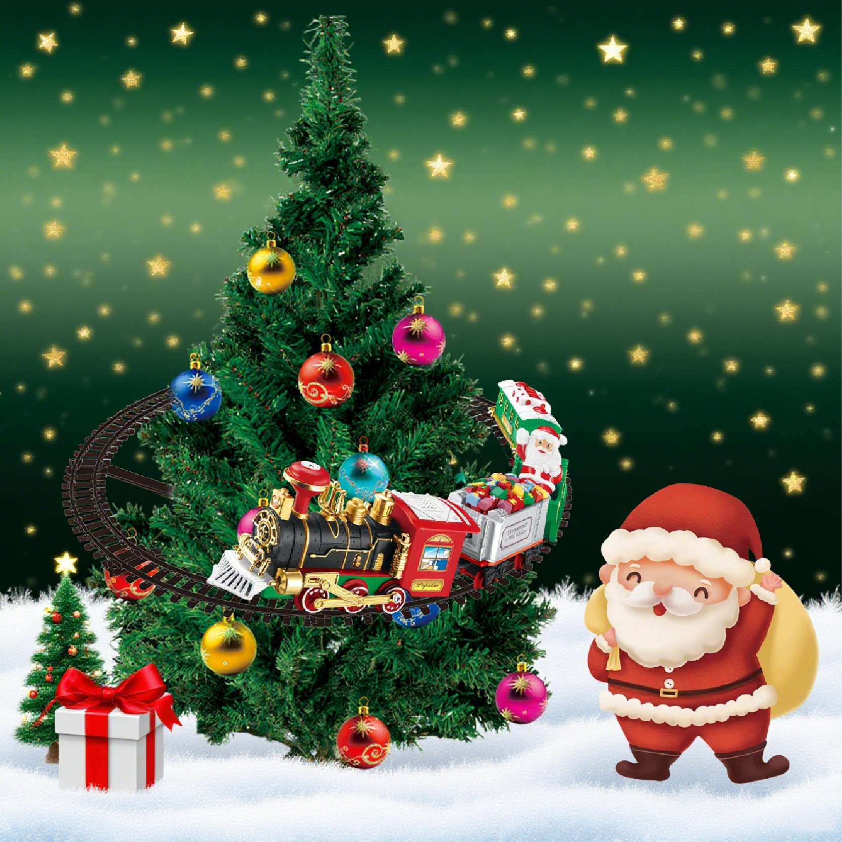 B/O Christmas Rail Car With Light And Music