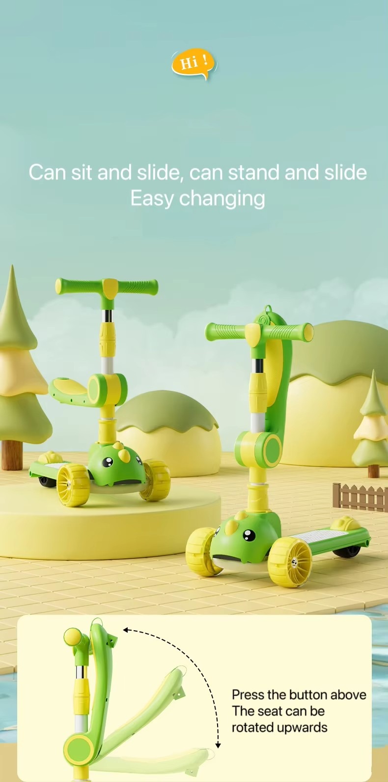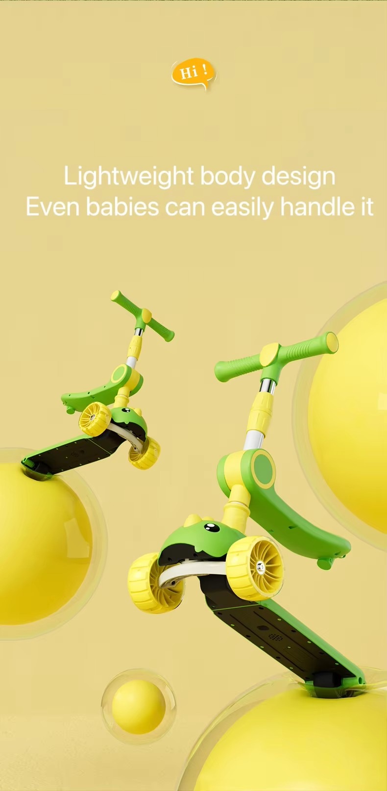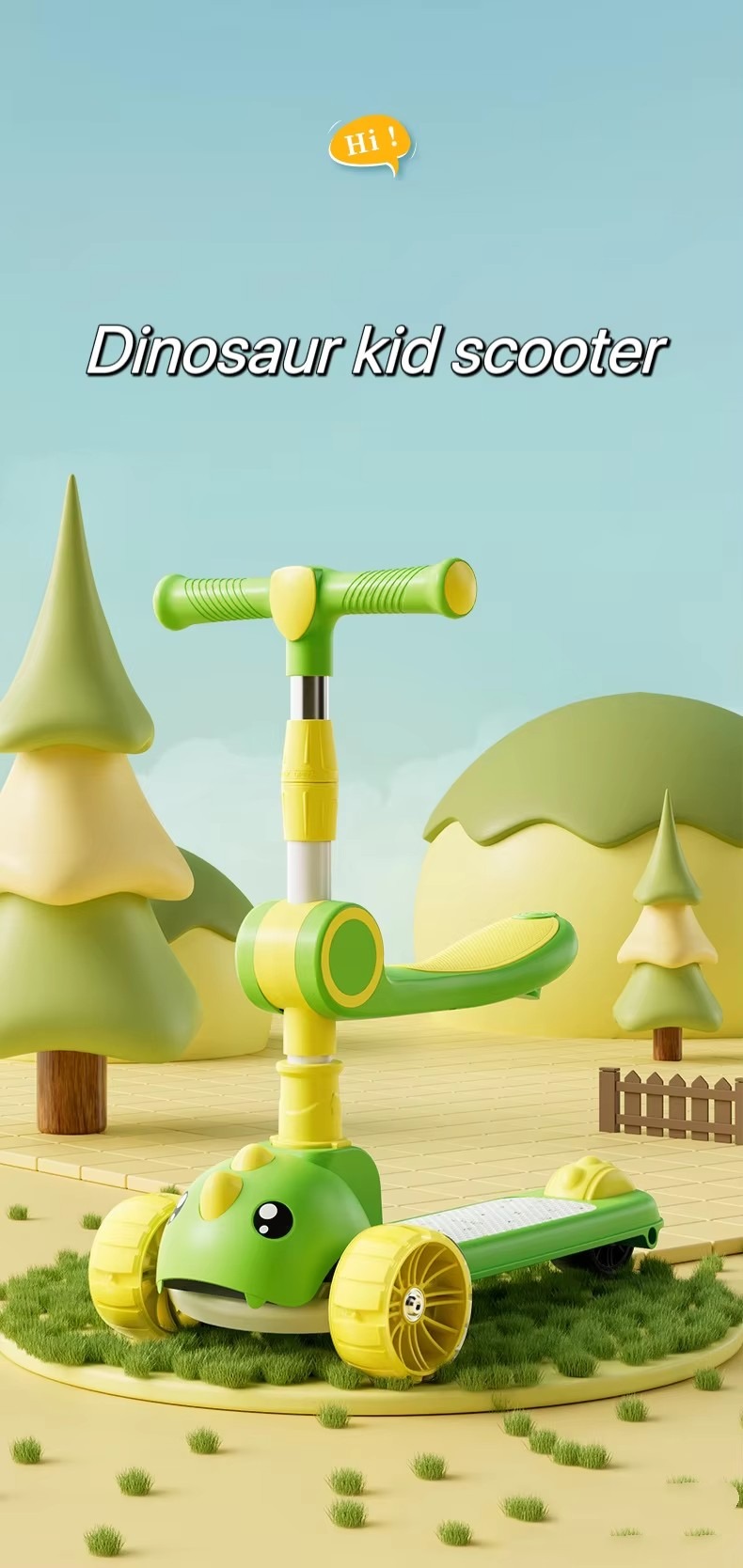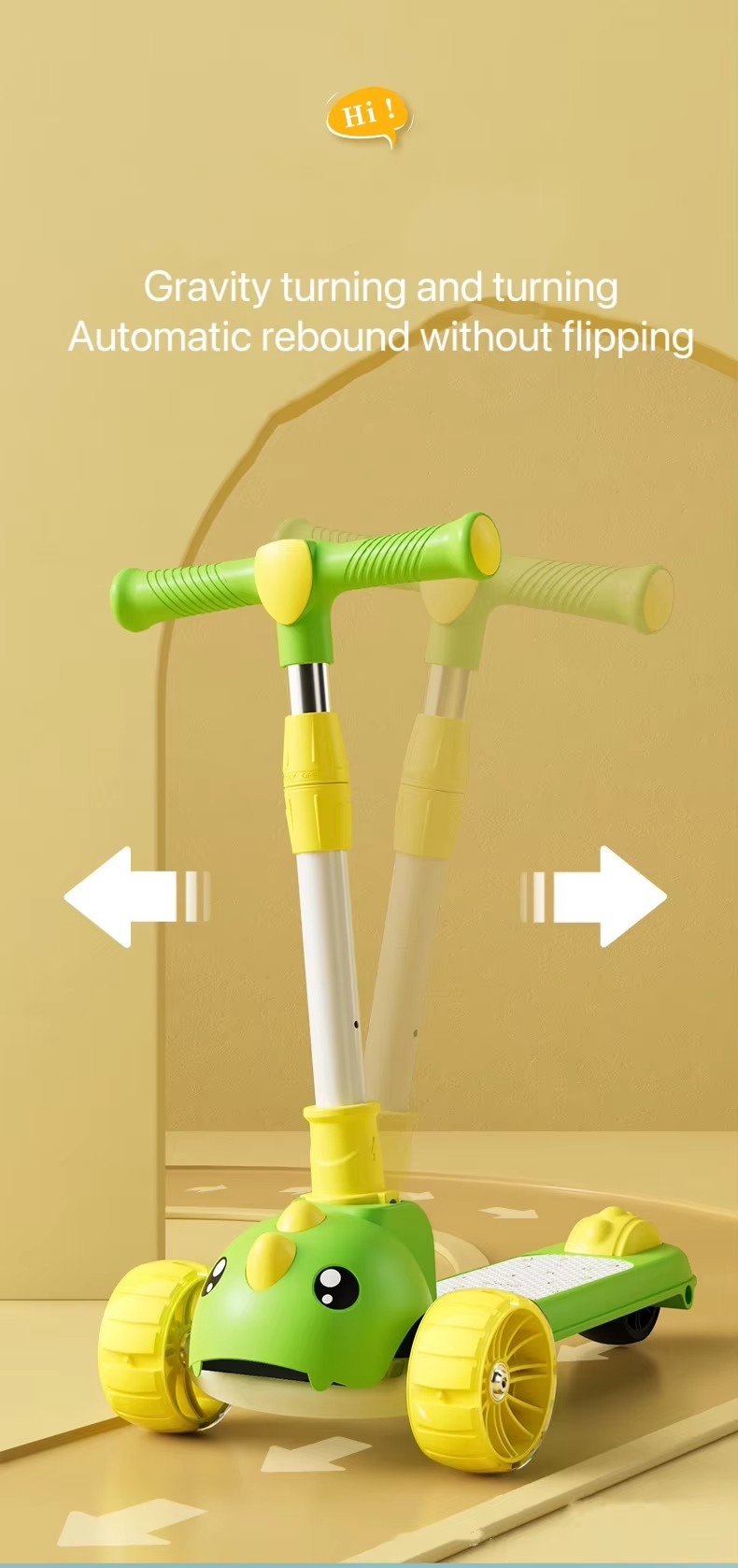 Children’S Scooter, One-Click Folding, Enlarged Hummer Flashing Wheels With Music And Lights