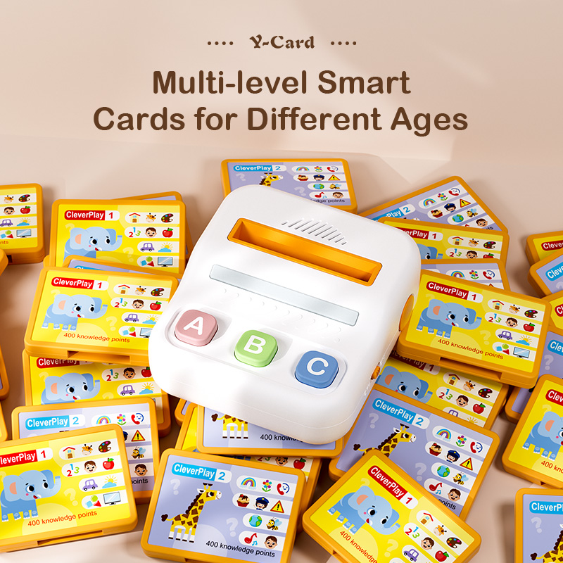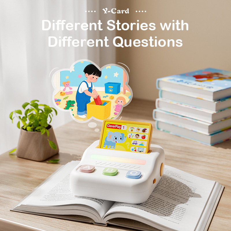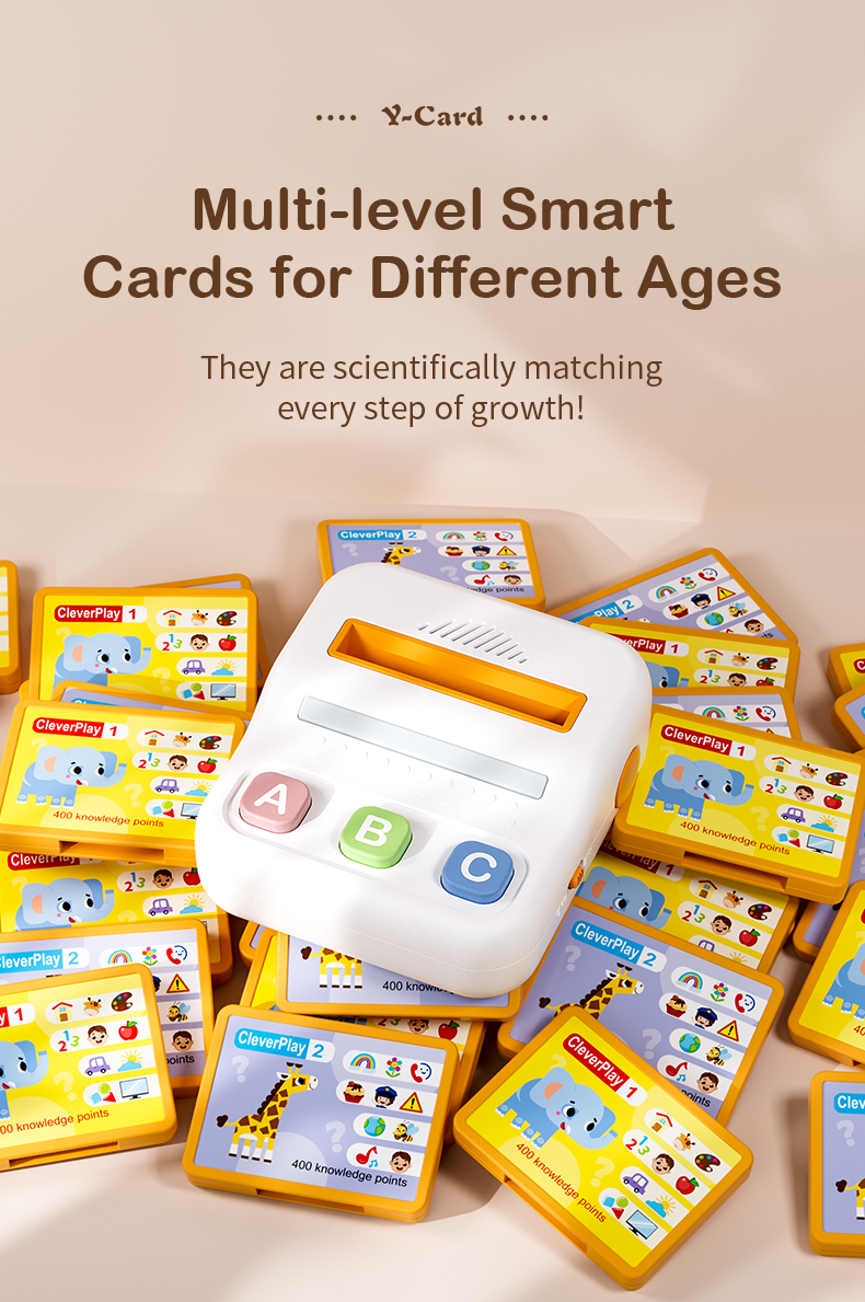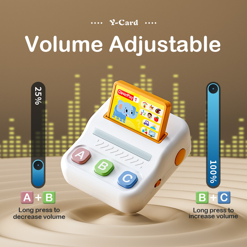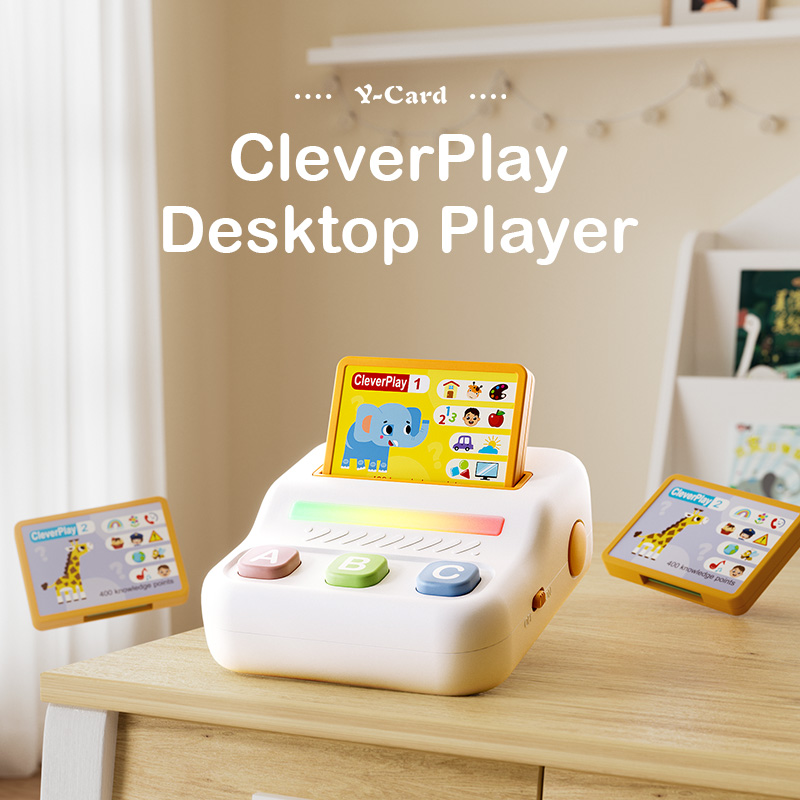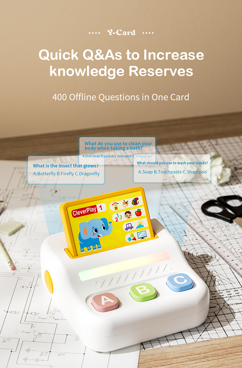 Clever Play Desktop Player turns early childhood education into a joyful game through stories and interactive Q&AClever Play Desktop Player offers various types of cards to choose from, allowing for interactive responsesClever Play Desktop Player offers a variety of cards to choose from, each containing different stories and questionsAnswering one question correctly earns one point in Clever Play Desktop Player. Press and hold the A and C keys to view your scoreClever Play Desktop Player Button Functions and Battery Size GuideClever Play Desktop Player Product Information OverviewProduct and Packaging Dimensions for the Clever Play Desktop Player