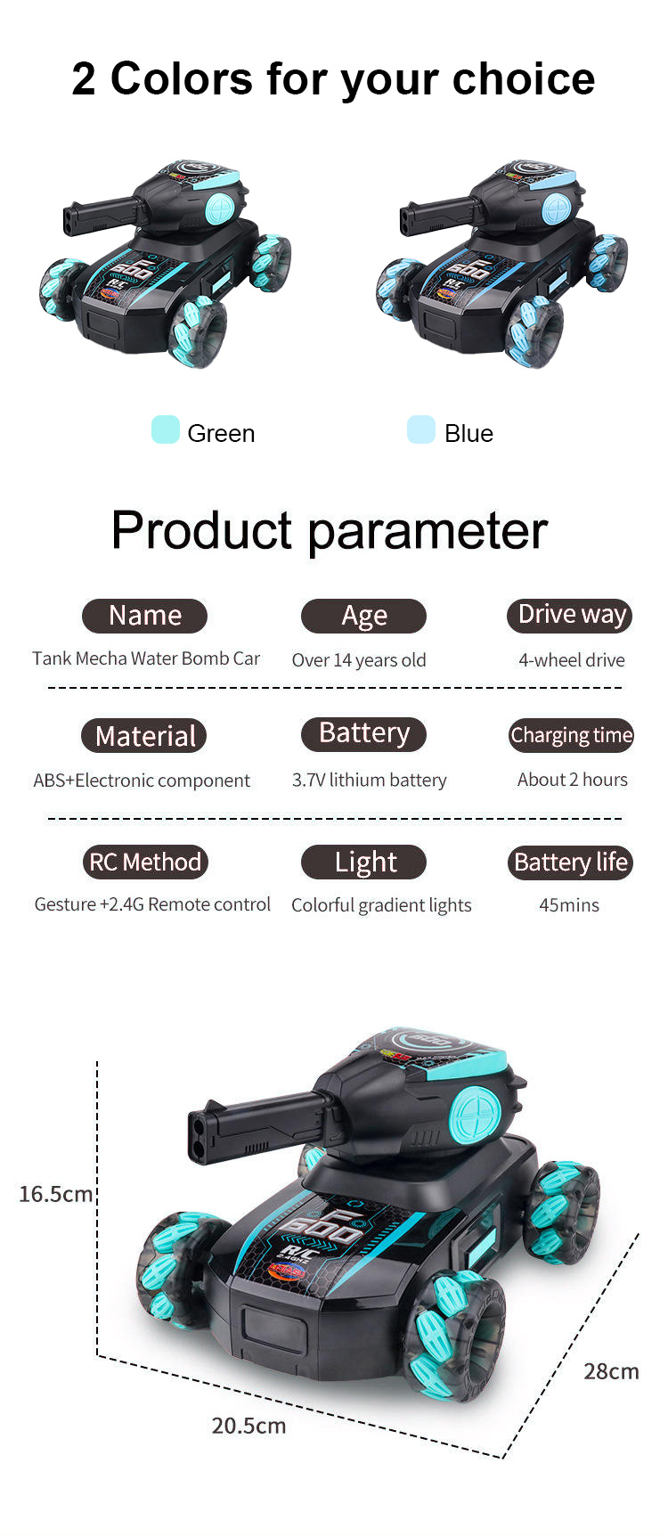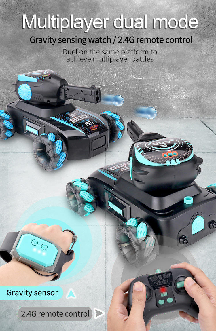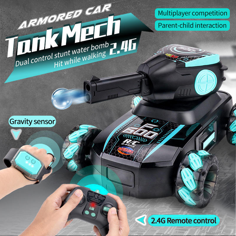 Colorful Gradient Light Hollow Wheel Tank Mech Water Bomb Car(2.4G Dual Remote Control)