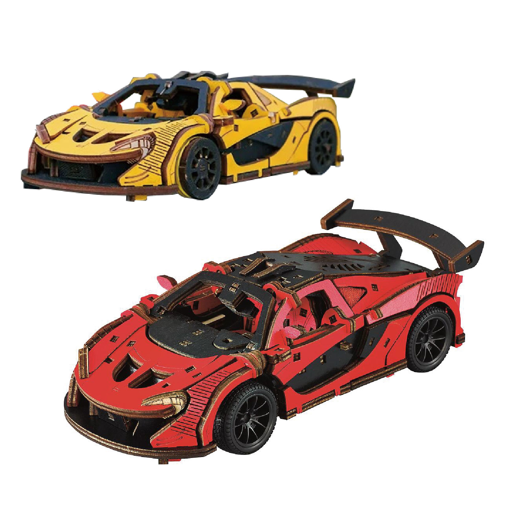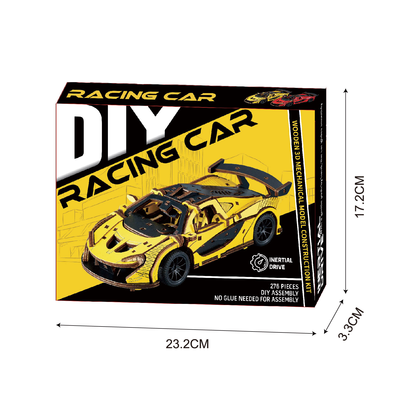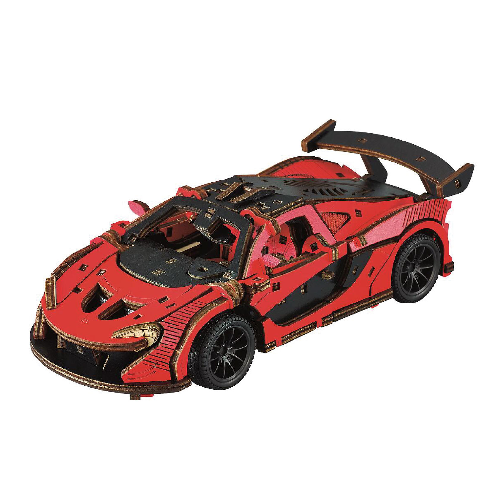 Diy 3D Wooden/Wooden Car/Assembled Car/Wooden Assembled Model Car /1:24 Wooden Inertial Racing Car (Red)