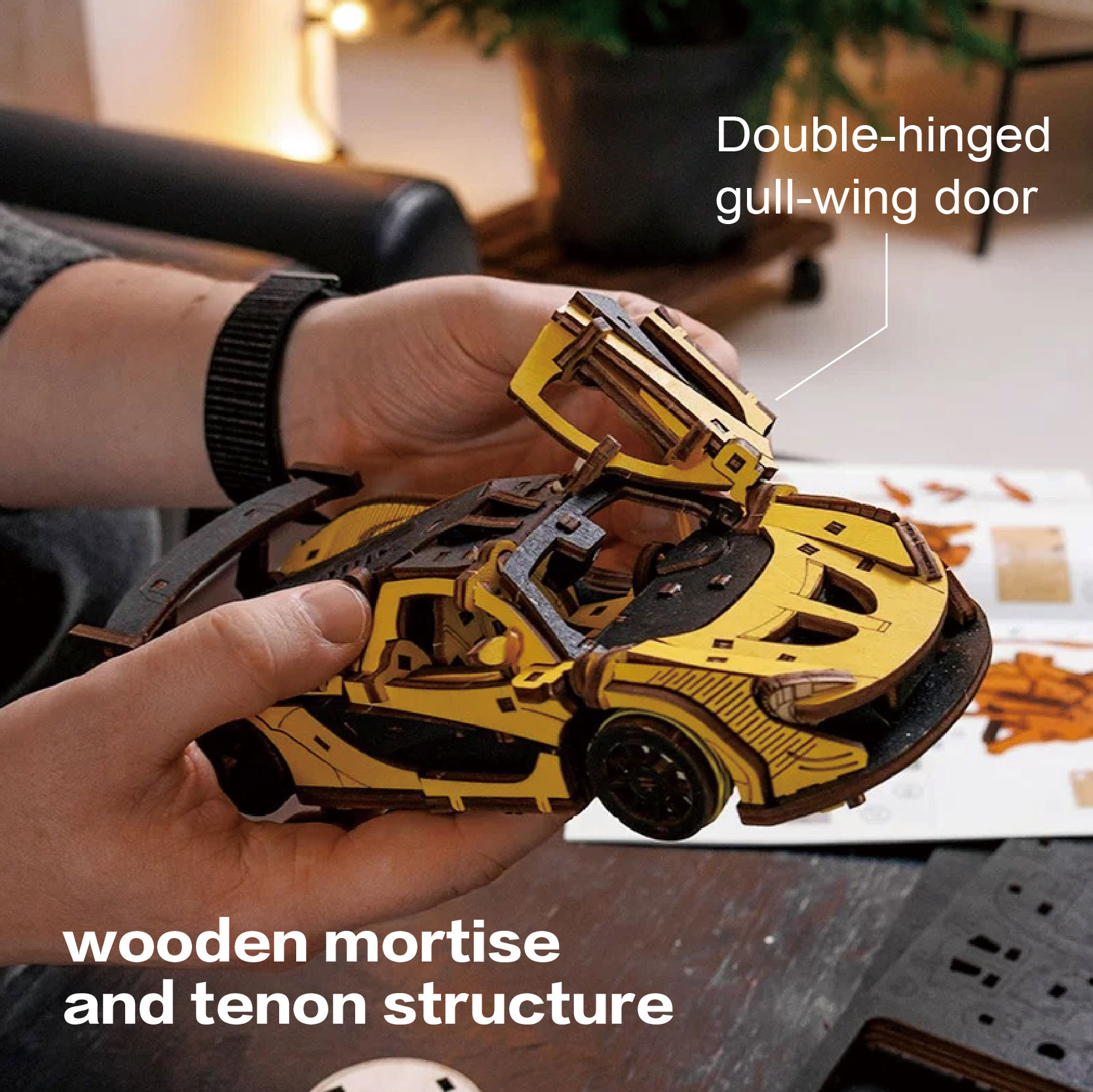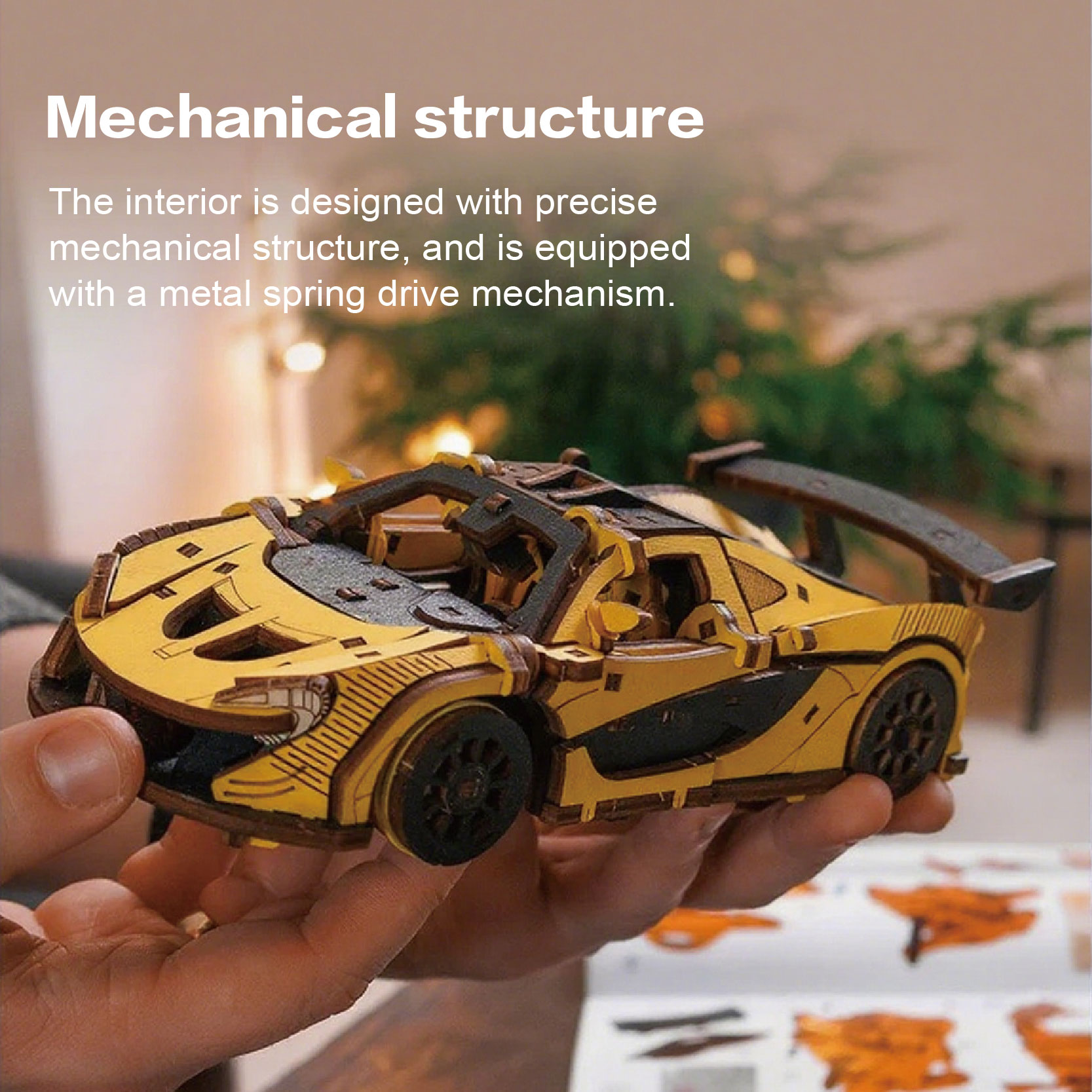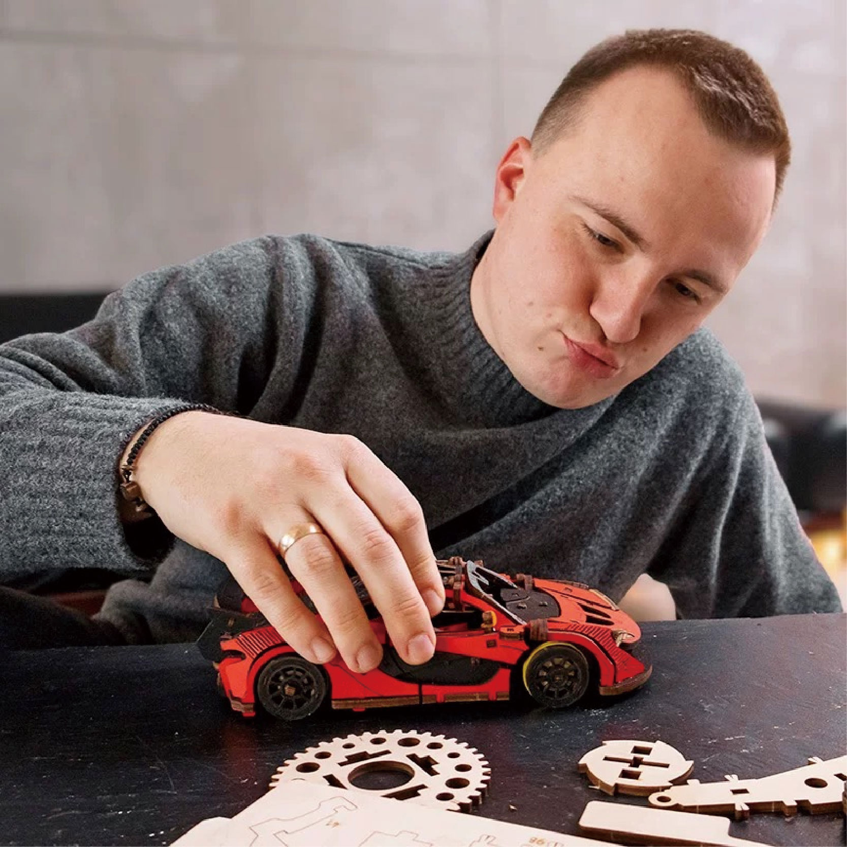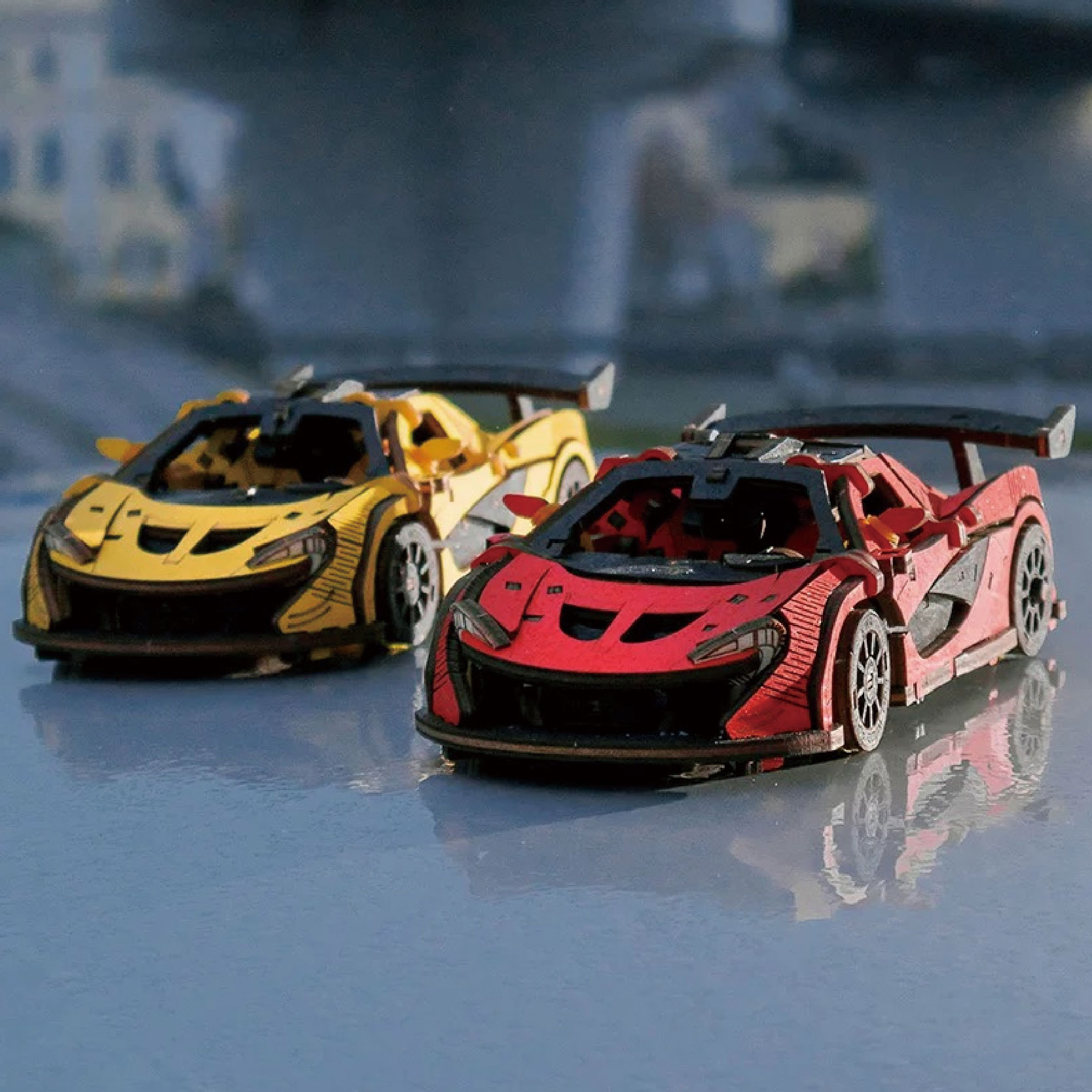 Diy 3D Wooden/Wooden Car/Assembled Car/Wooden Assembled Model Car /1:24 Wooden Inertial Racing Car (Red)