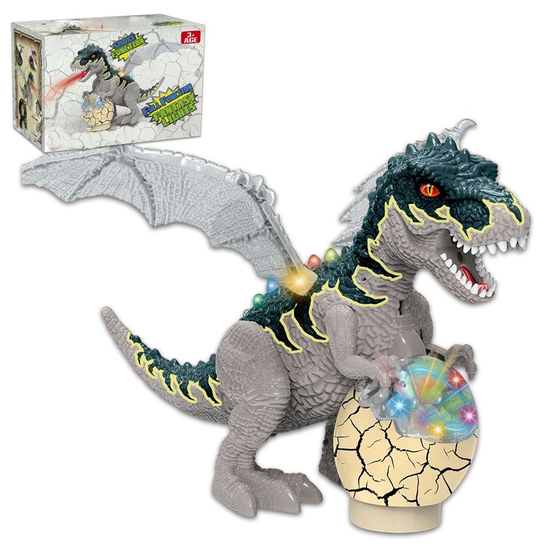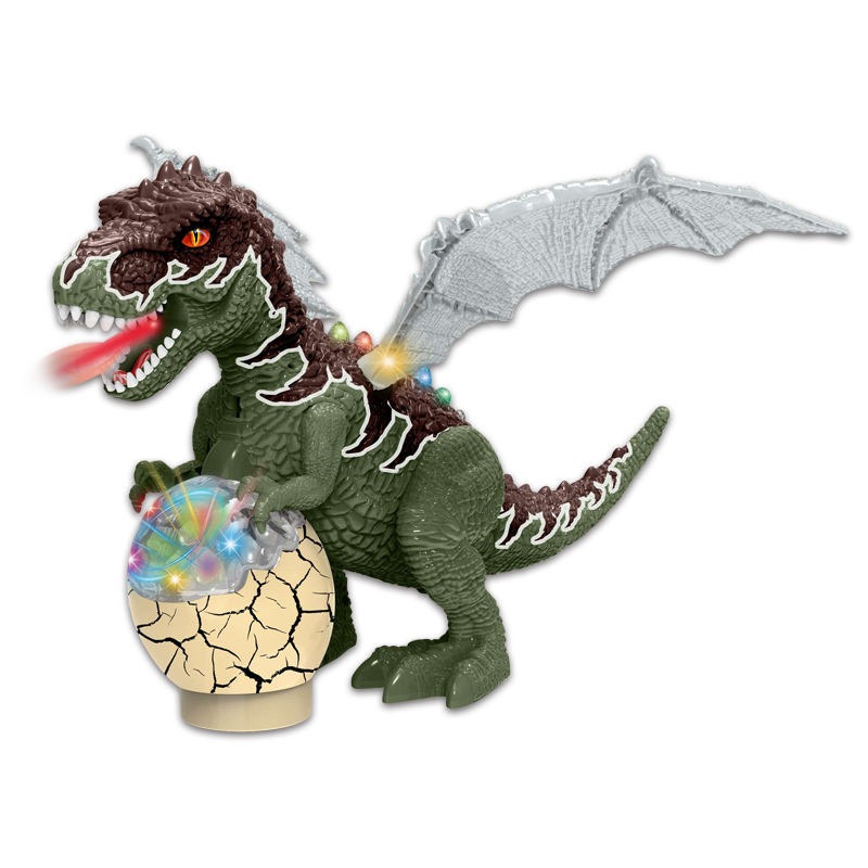 Electric Egg-Carrying Dinosaur With Spray Function, Light And Music, Tail Swing, Universal Walking (Two-Color Mixed Decoration).