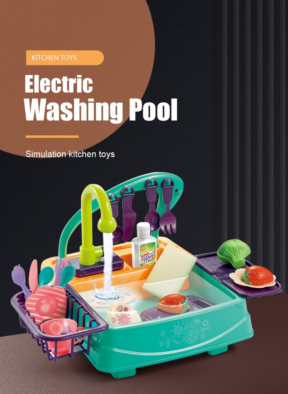 Electric Washing Pool Simulation Kitchen Toys 27PCS