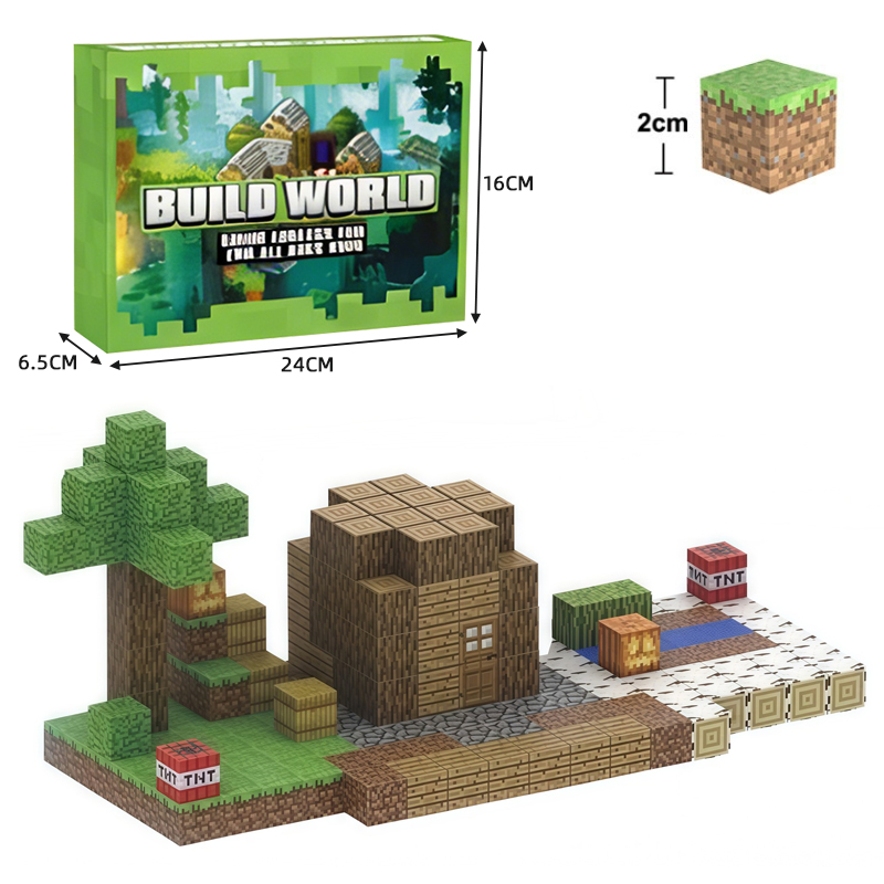 Magnetic Cube Building Blocks 192pcs + 6 Dolls and its outer packaging dimensions