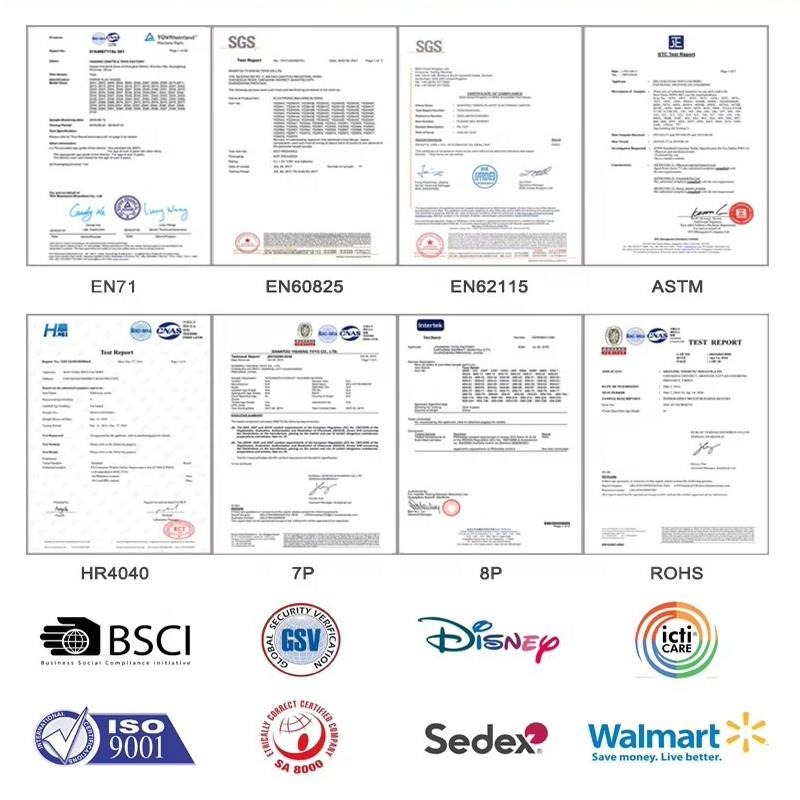 Yes, we provide product testing reports for most toys to ensure they comply with international safety and quality standards such as ASTM, HR4040, CE, ROHS, GCC…etc. These reports are conducted by certified third-party laboratories. In addition, we also have ISO9001, ISO14001 certificate and BSCI factory inspection report. If you need them, please let us know and we will be happy to provide them.