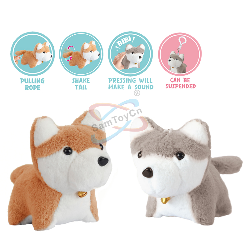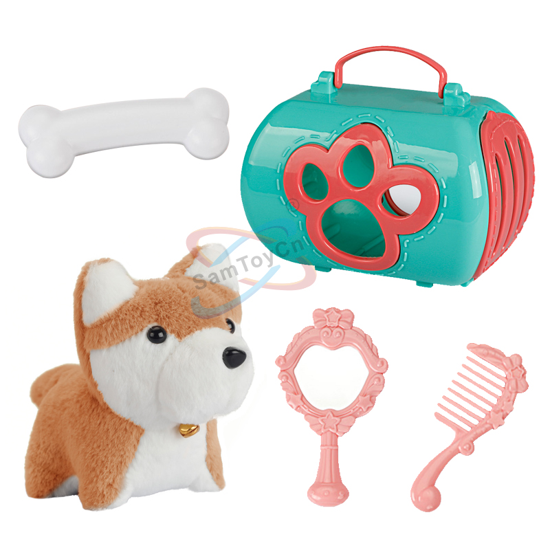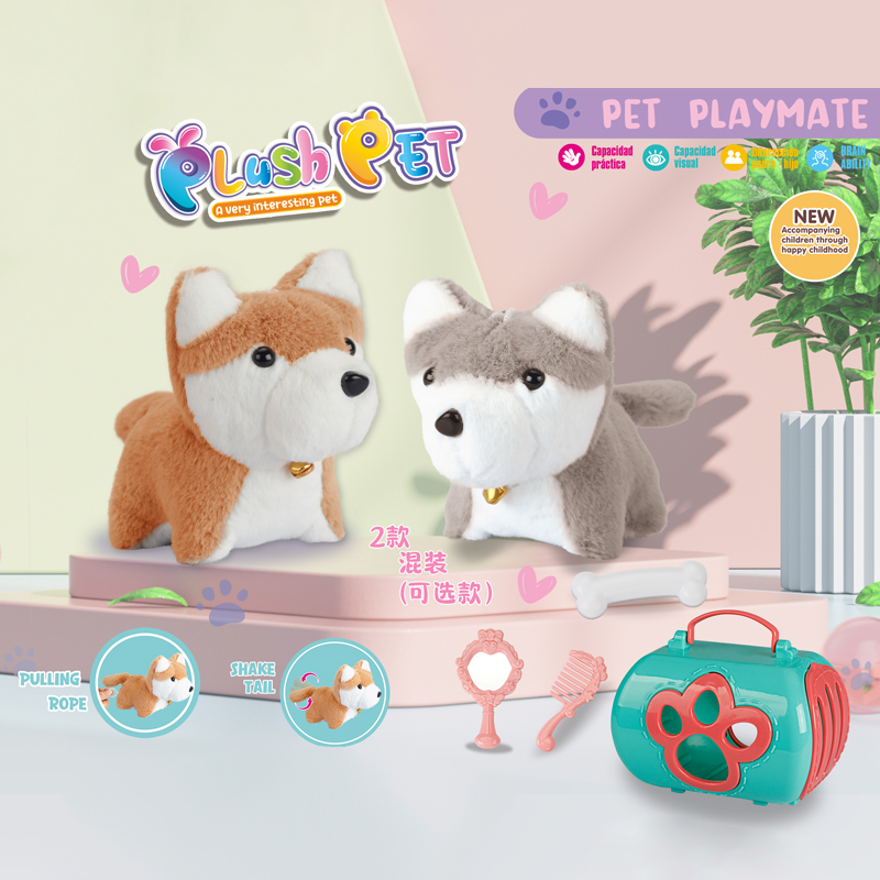 Pull String Shake Tail Plush Dog Cage Set