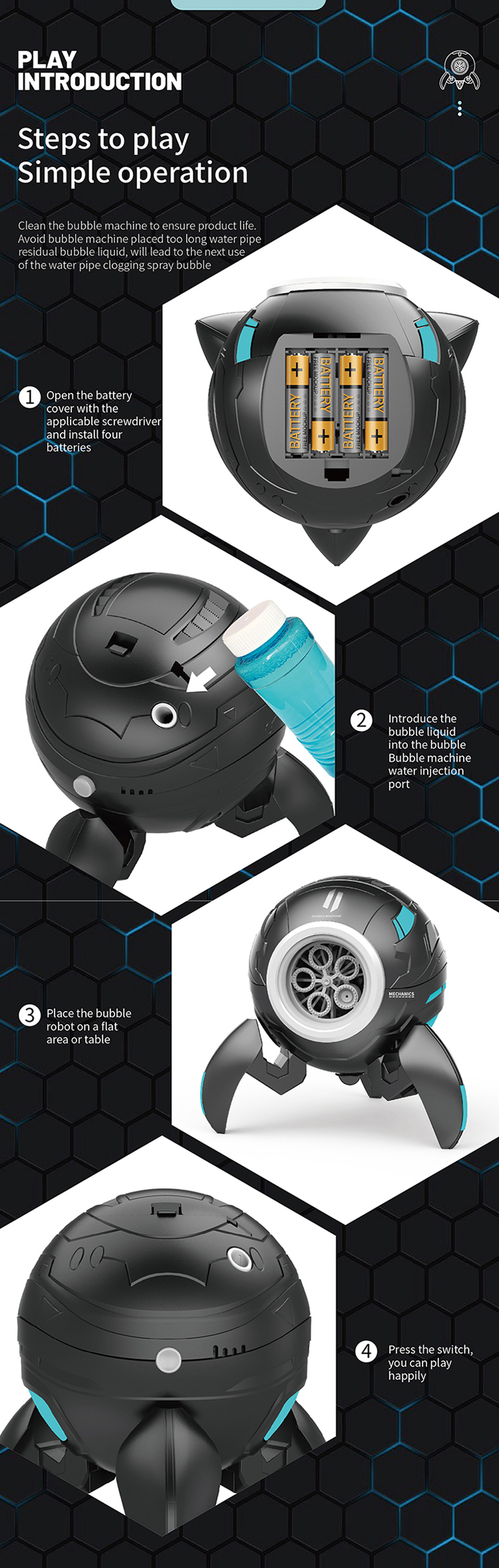 Sci Fi Mecha Five Hole Bubble Machine