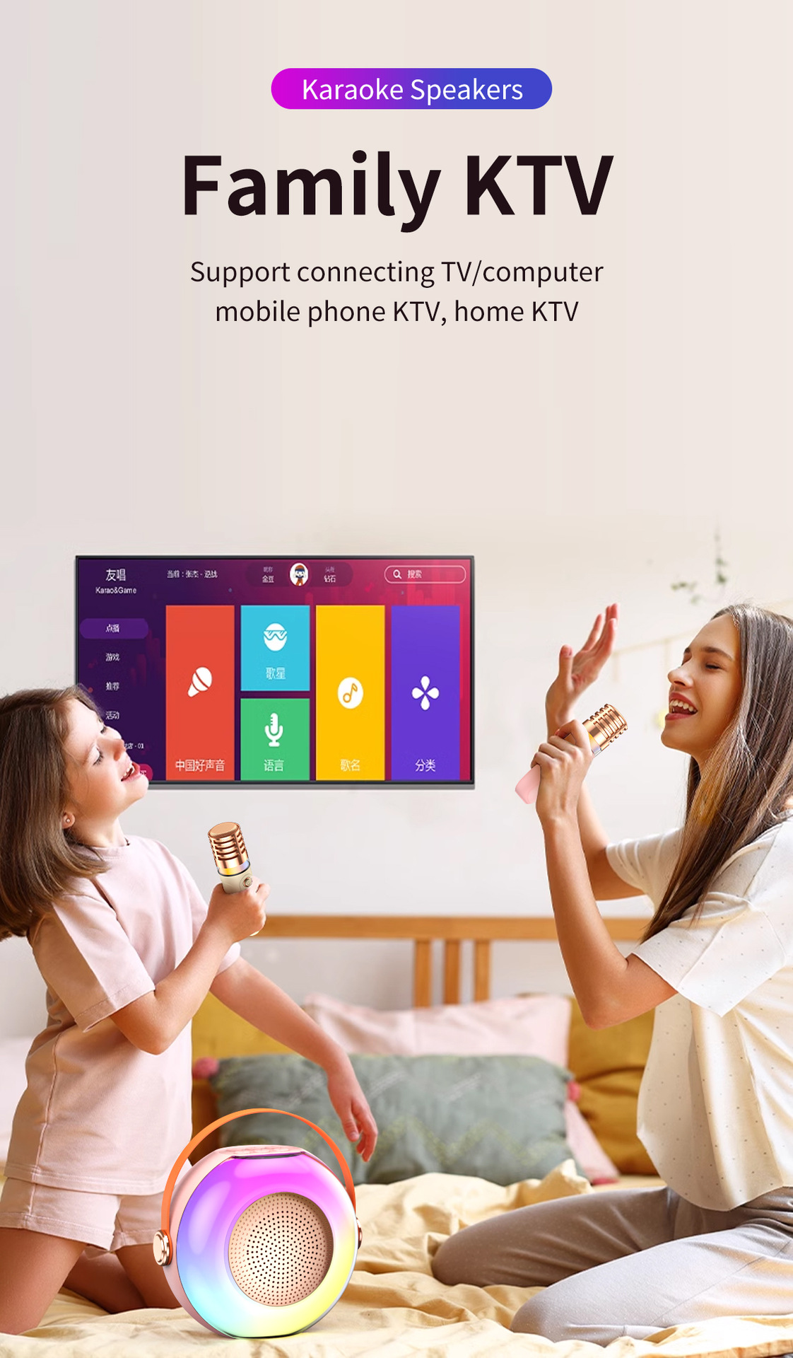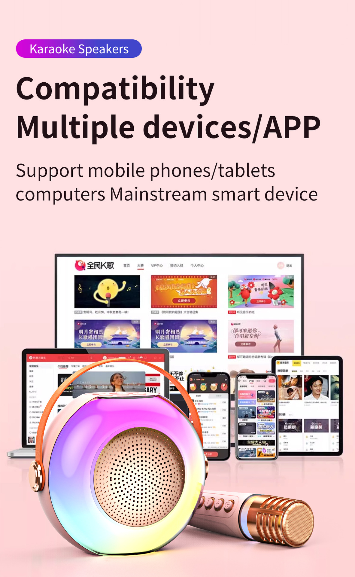 Wireless Bluetooth Microphone Karaoke Speaker(Single Microphone)