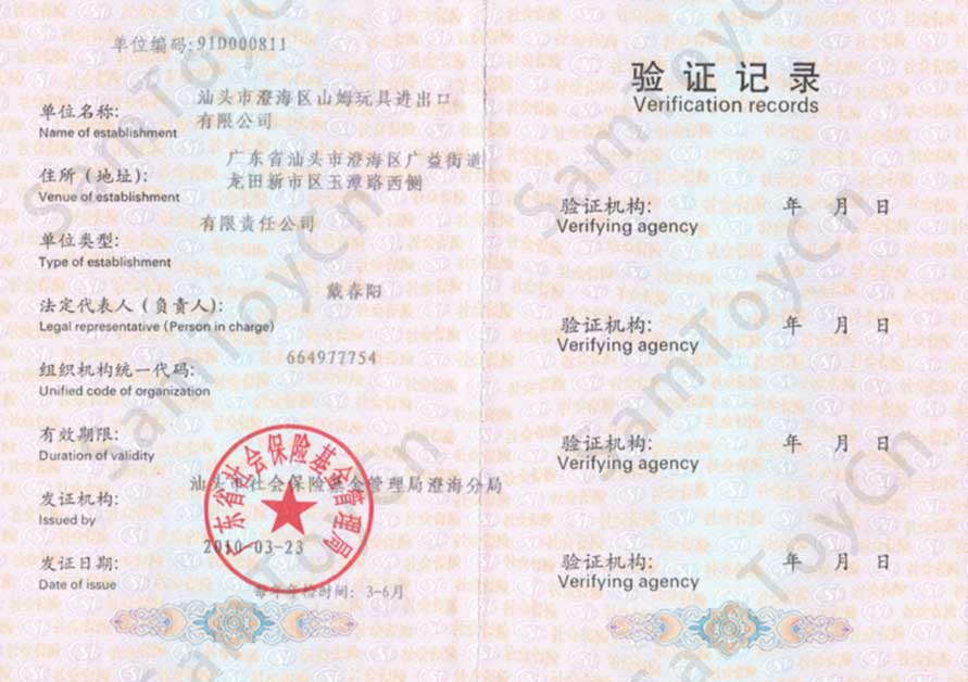 Social insurance registration certificate