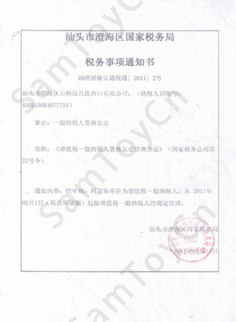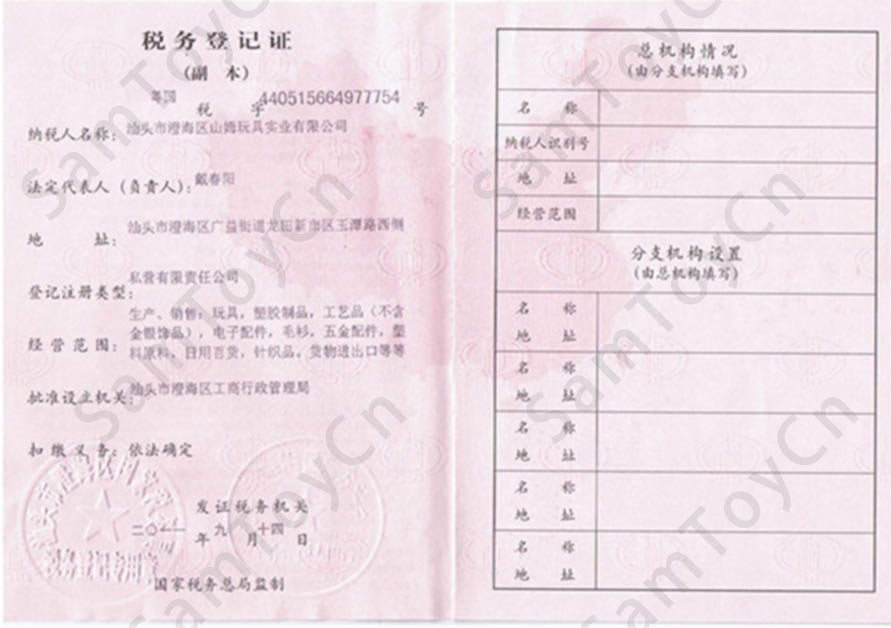 Tax registration certificate