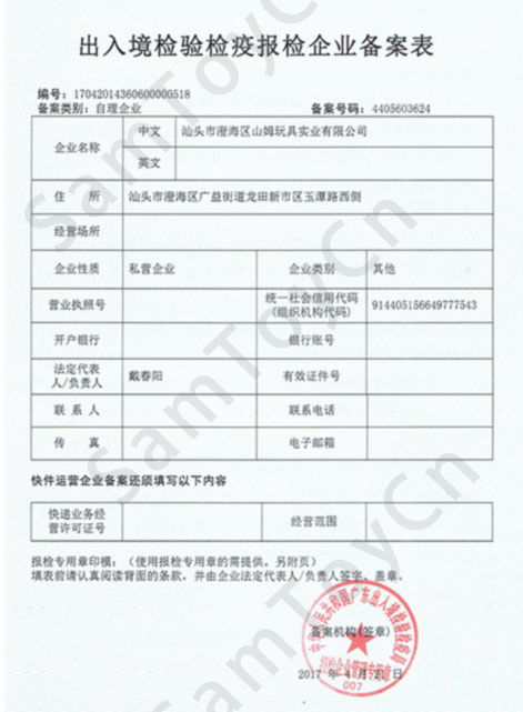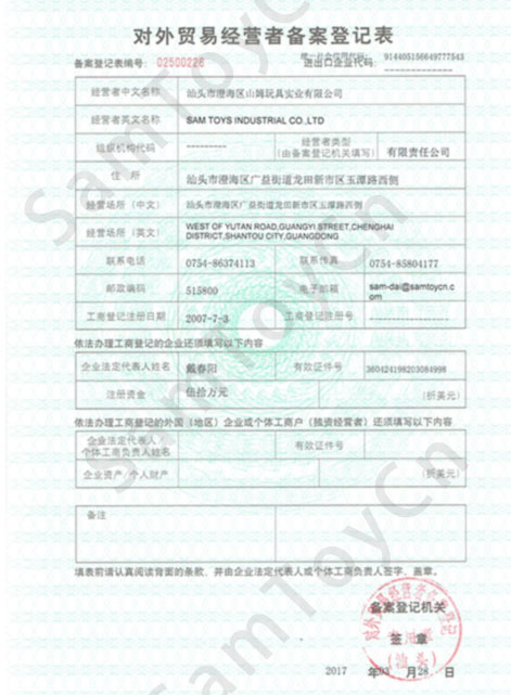Registration form for foreign trade