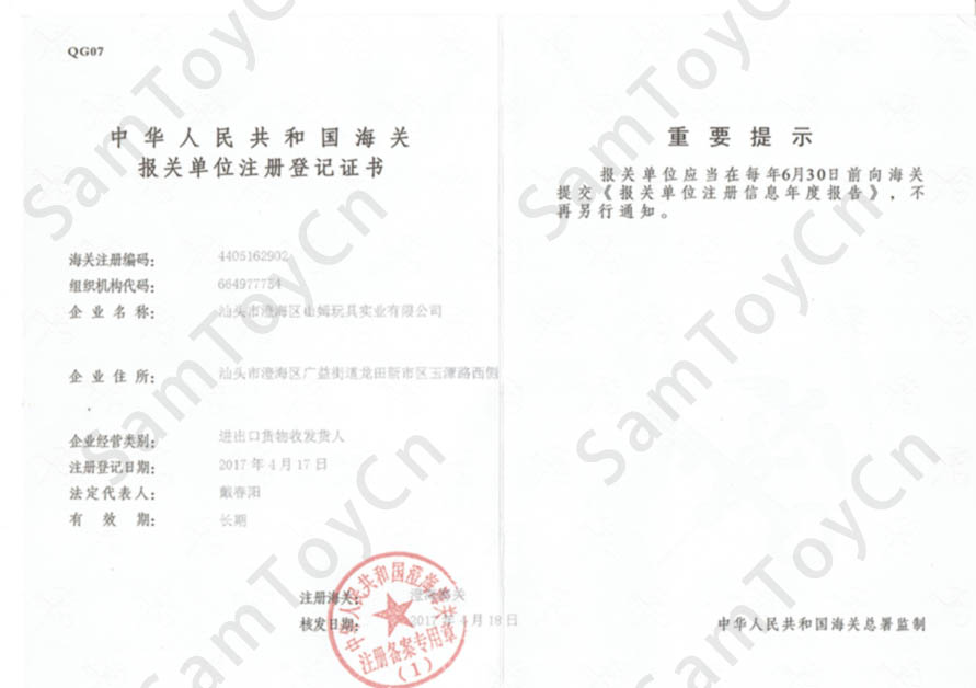 Registration certificate of customs
